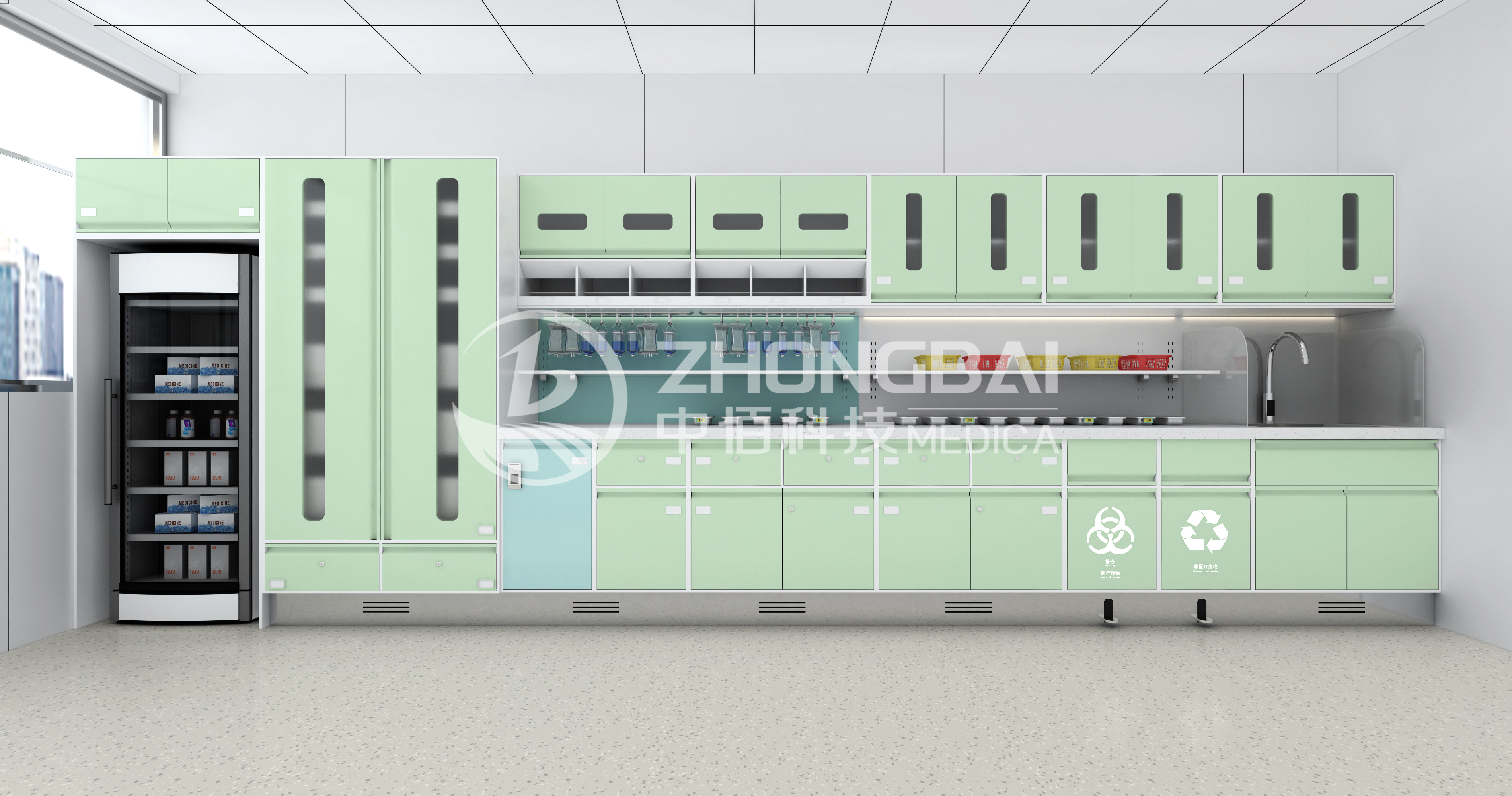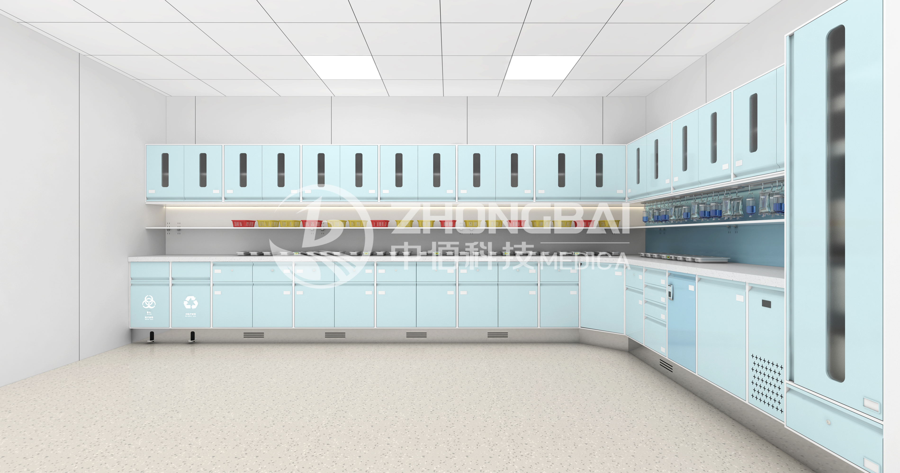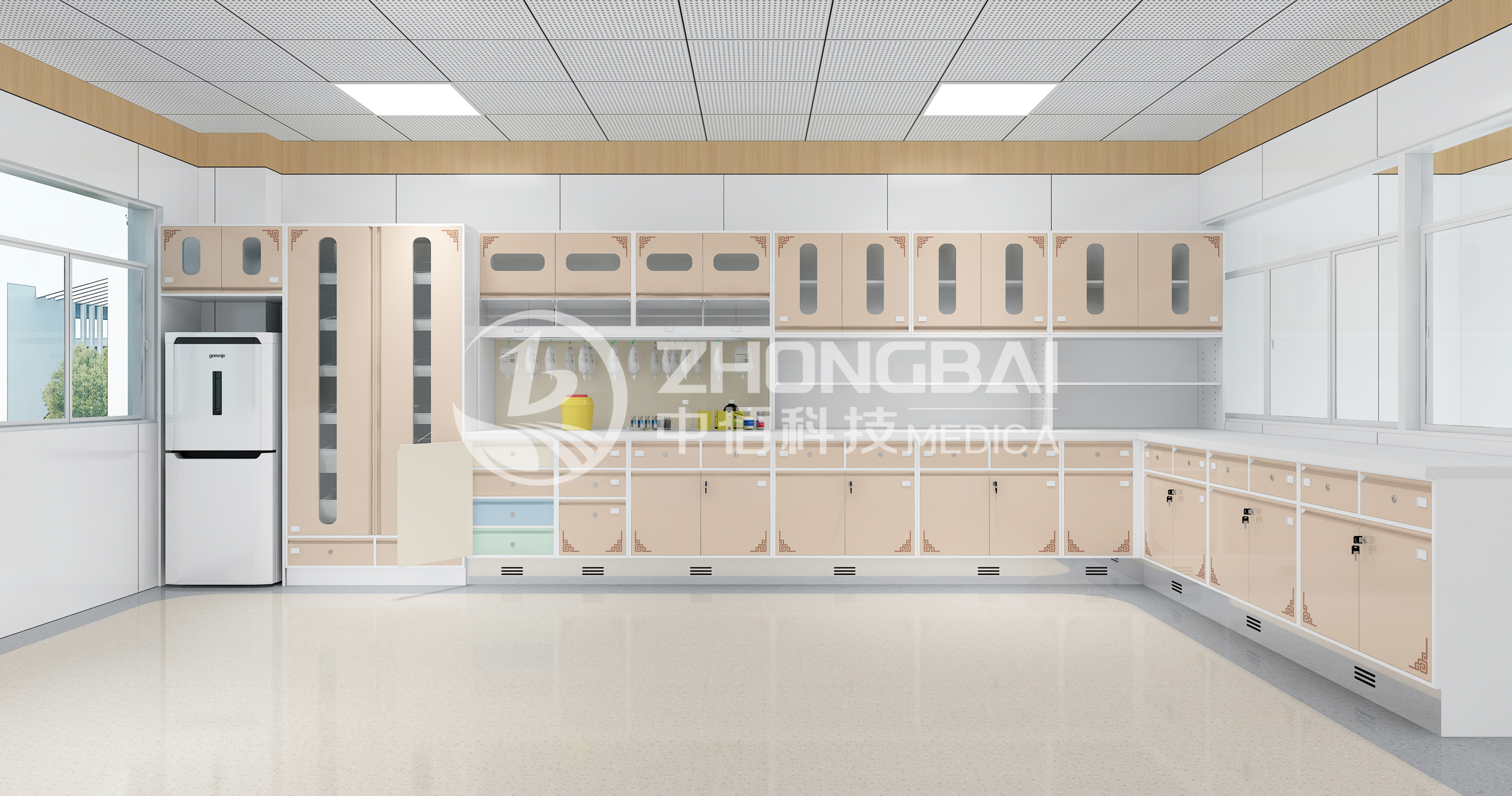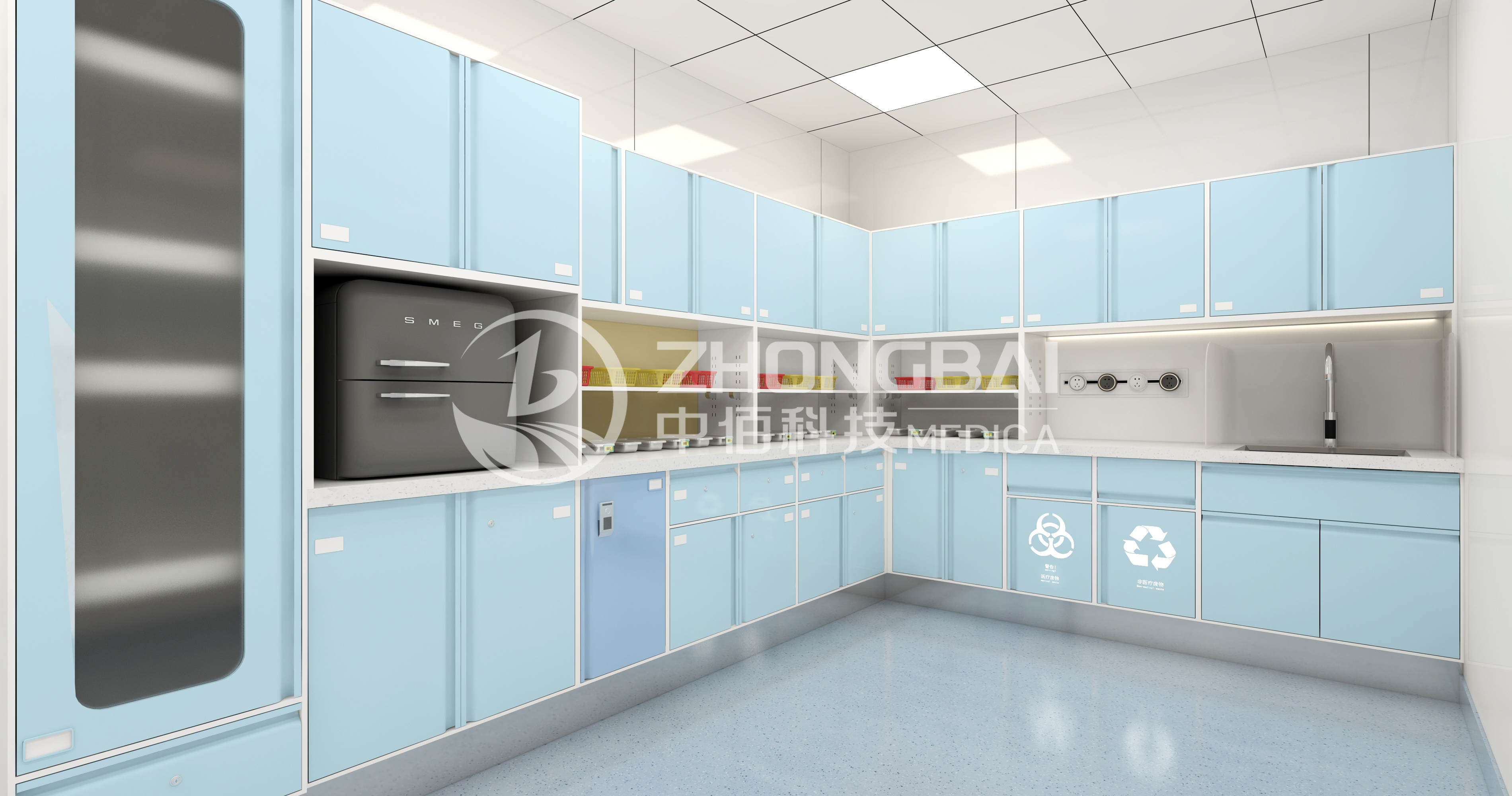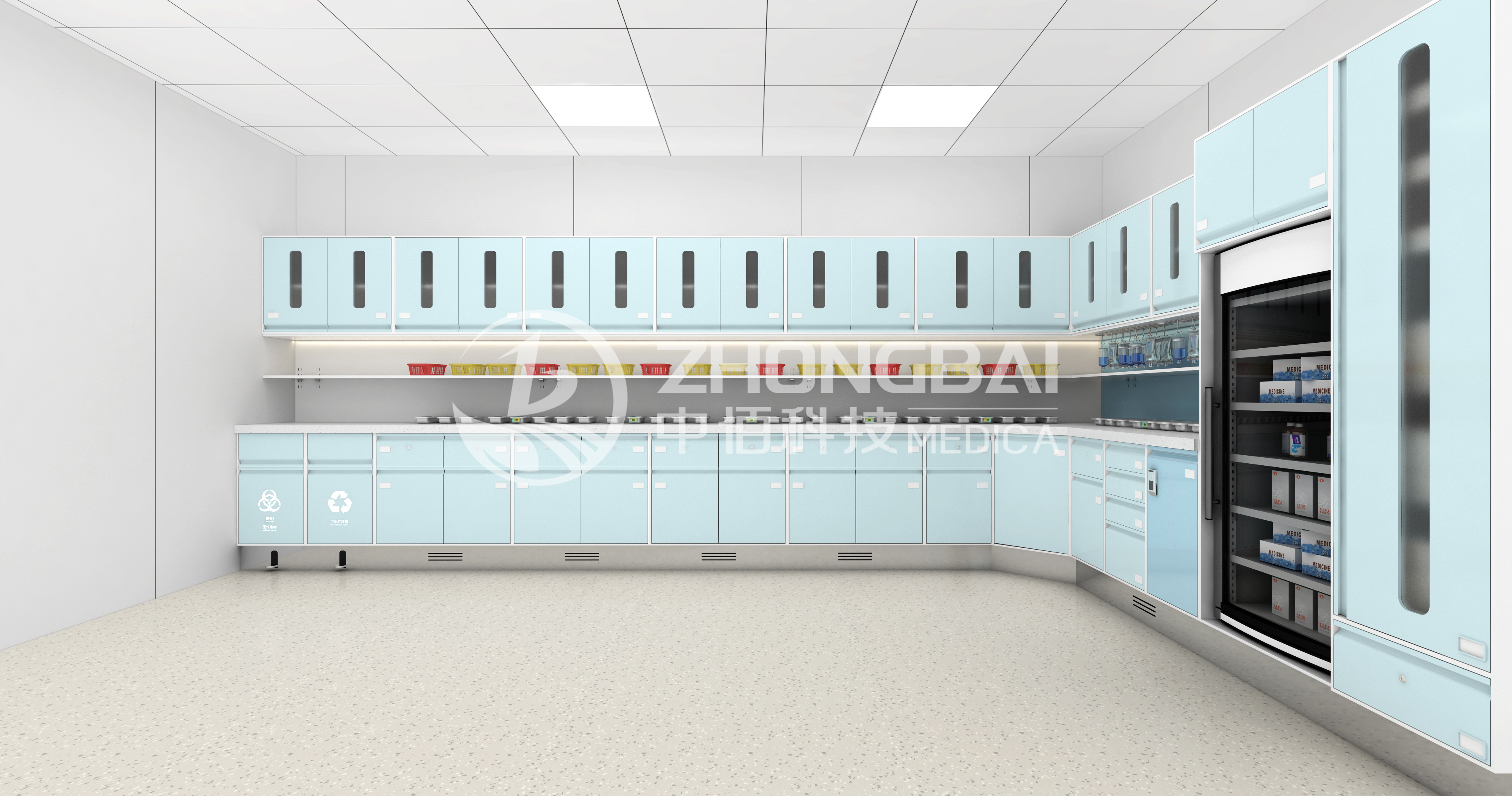 治療室設在護士工作站附近,主要為醫(yī)護人員進行治療準備、藥液配置的專用工作室。室內設有專用操作臺,壁柜、藥柜、發(fā)藥車等,室內需潔污分區(qū)管理。
