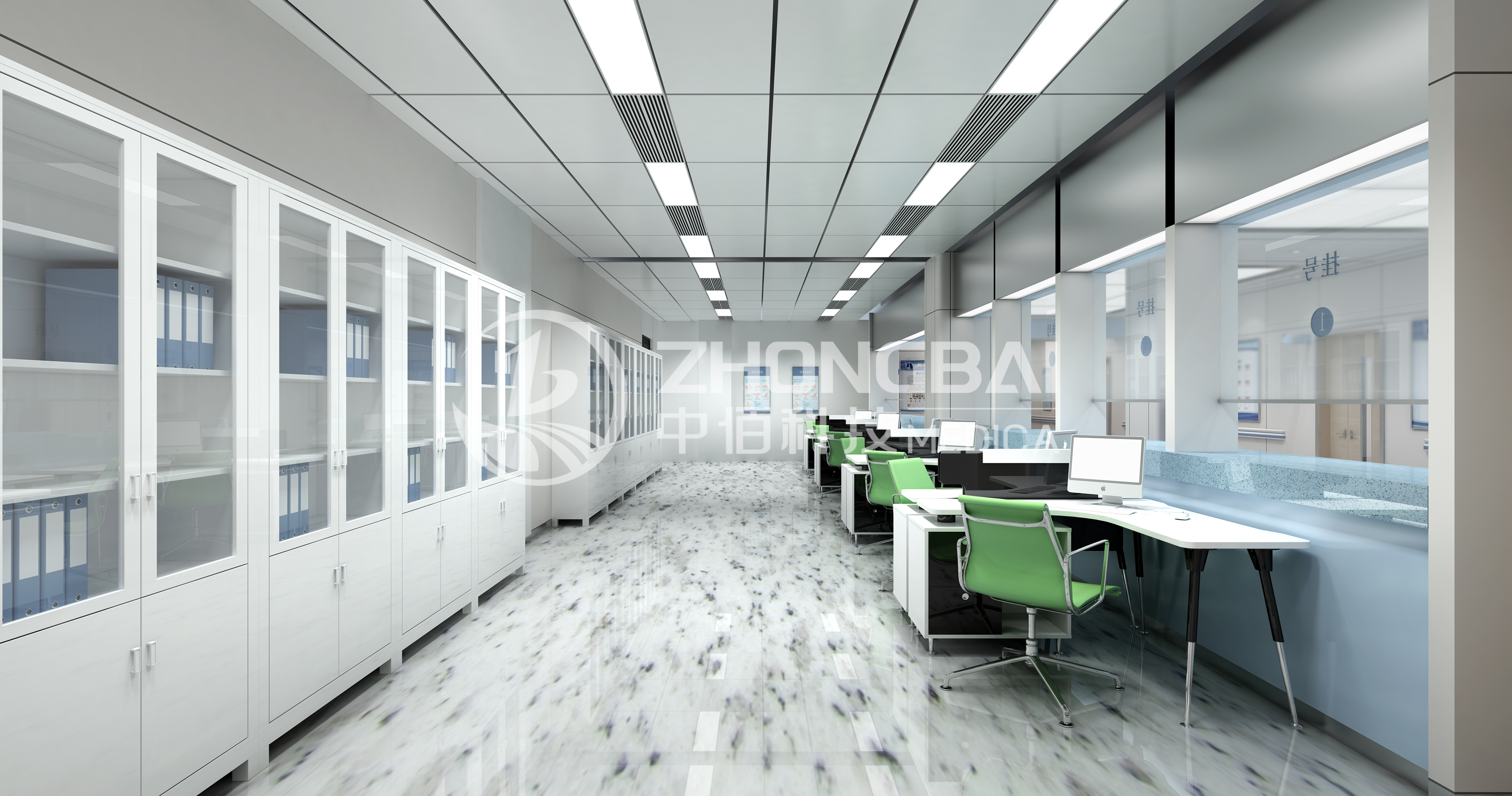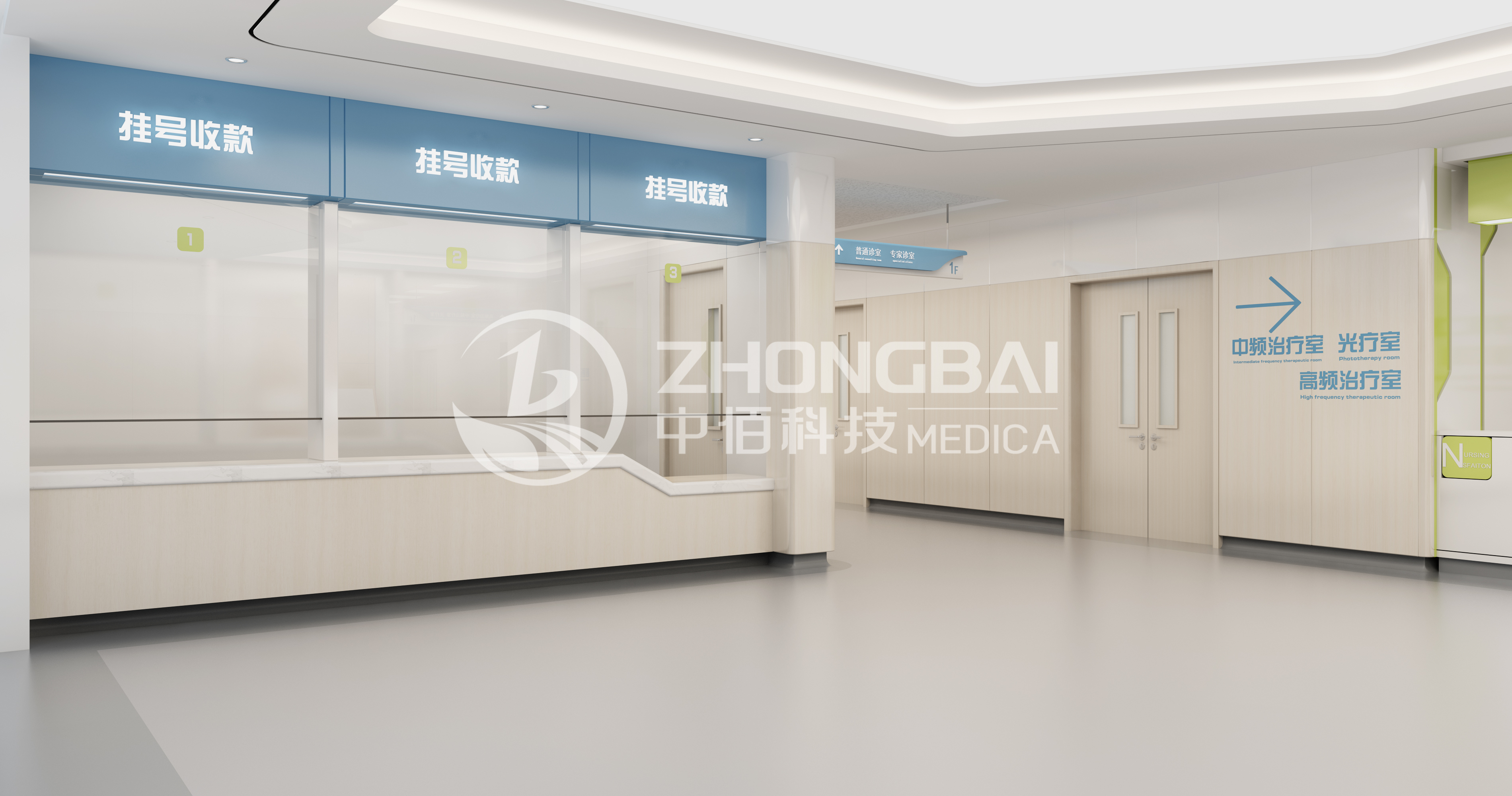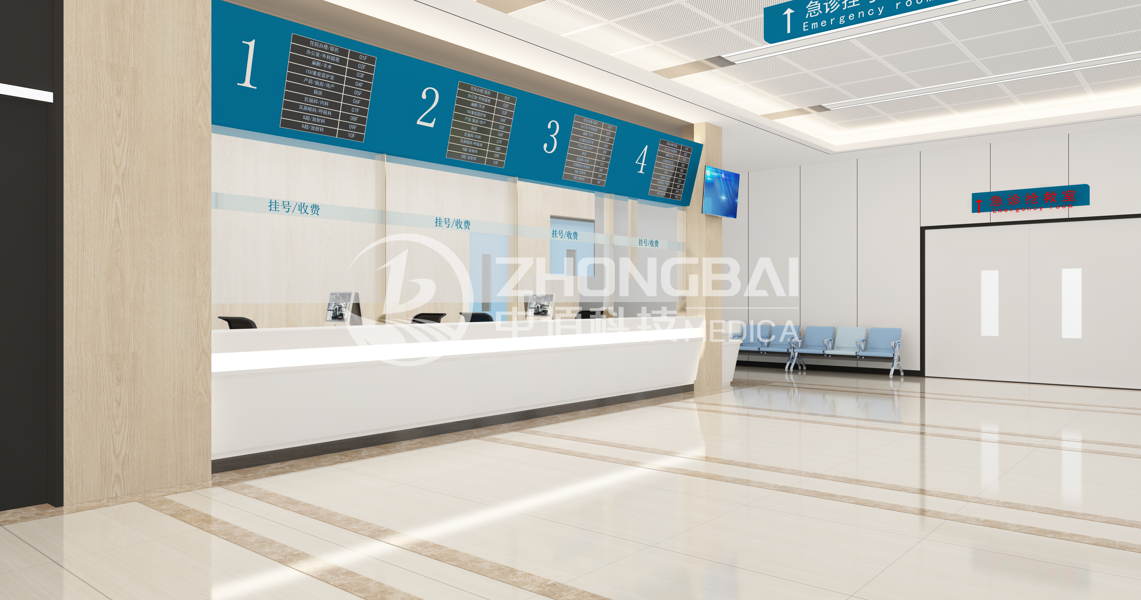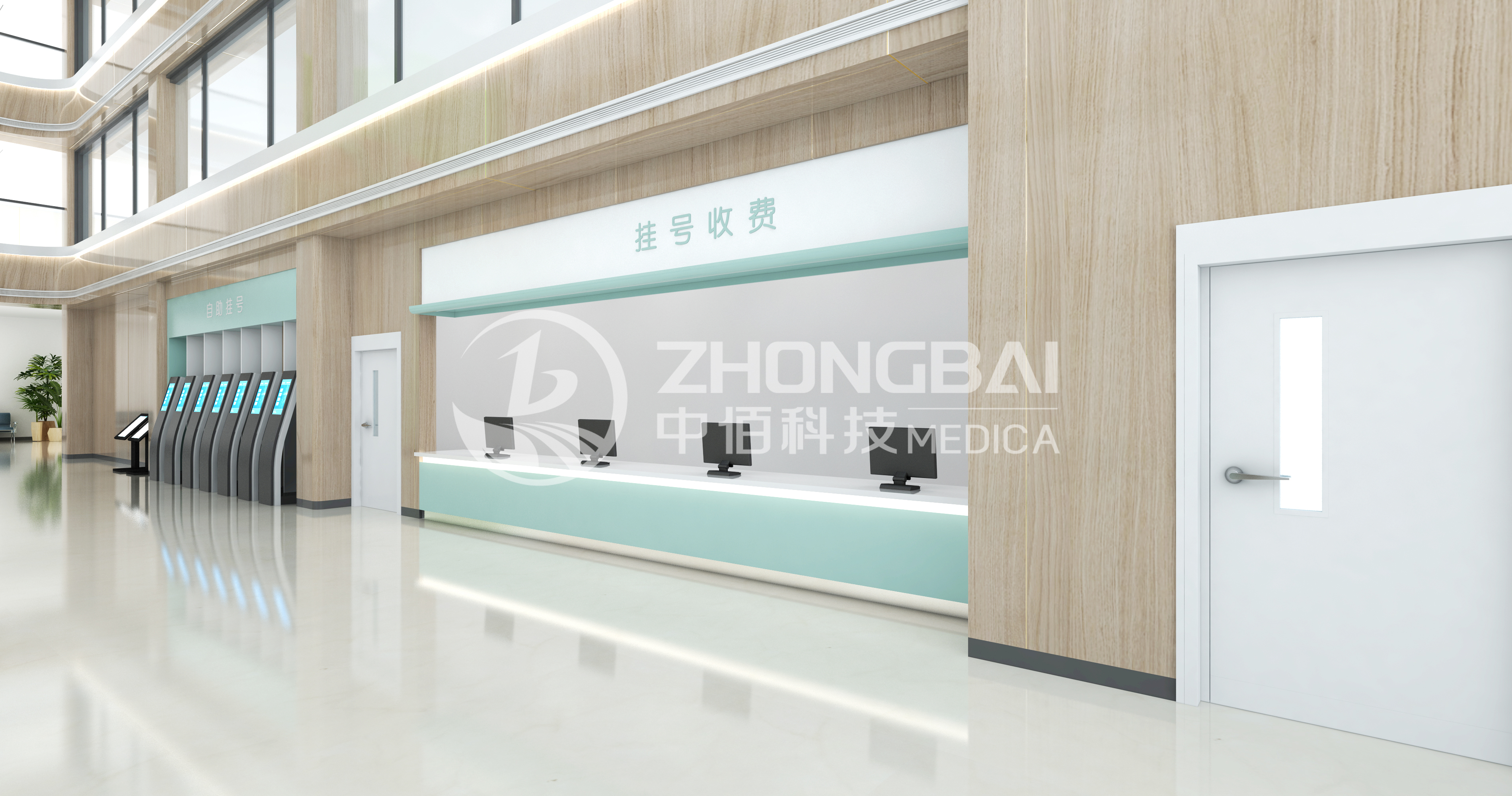門診收費、掛號單元是直接面向社會的重要窗口,是醫(yī)院服務(wù)形象的展示平面。一般設(shè)置在門診大廳靠近入口位置,為避免集中掛號的擁擠問題、減少患者排隊等候時間,可設(shè)置分層收費掛號窗口,優(yōu)化門診流程。